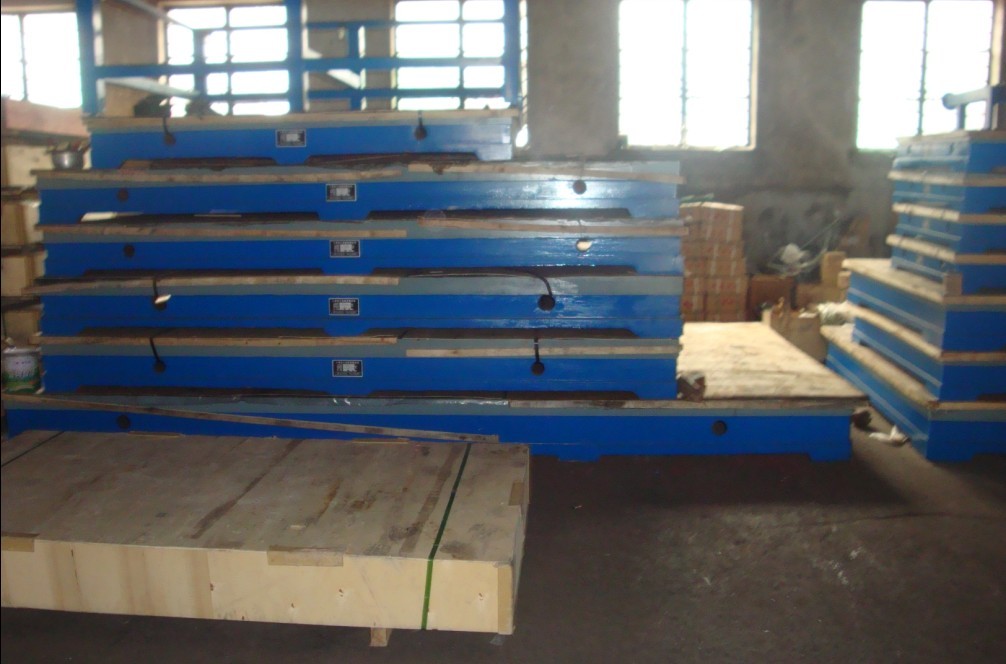 鑄鐵平臺產(chǎn)品別名: 鑄鐵平板鑄鐵平臺 劃線平板 檢驗平板 測量平板 刮研平板 裝配平板 鑄鐵平臺按GB/4986-85的標(biāo)準(zhǔn)制造,產(chǎn)品制成筋板式和箱體式,工作有長方形,材料HT200,工作面采用刮研工藝,工作面上可加V型、T型、U型槽和圓孔、長孔等。平板是用于工件檢測或劃線的平面基準(zhǔn)器具。平板安裝應(yīng)調(diào)至水平、負(fù)荷均分布于各支點上,環(huán)境溫度(20±5℃)使用時應(yīng)避免振動。 鑄鐵平臺用途:用于機(jī)械、發(fā)動機(jī)的動力實驗,設(shè)備調(diào)試,具有較好的平面穩(wěn)定性和韌性,表面帶有T型槽,可以用來固定實驗設(shè)備。 鑄鐵平臺材質(zhì):高強(qiáng)度鑄鐵HT200-300工作面硬度為HB170-240,經(jīng)過兩次人工處理(人工退火600度-700度和自然時效2-3年)使用該產(chǎn)品的精度穩(wěn)定,耐磨性能好。 鑄鐵平臺規(guī)格:100×100—3000×8000,(大于此規(guī)格的鑄鐵平臺可以拼裝使用或按圖紙訂做。) 鑄鐵平臺精度:按國家標(biāo)準(zhǔn)計量檢定規(guī)程執(zhí)行,分別為0、1、2、3四個等級。 規(guī)格 | 精度等級 | 規(guī)格 | 精度等級 | 0級 | 1級 | 2級 | 3級 | 精刨 | 0級 | 1級 | 2級 | 3級 | 精刨 | 100×100 | 4 | 8 | 26 | | | 2500×2500 | | | 72 | 180 | 270 | 200×100 | 5 | 10 | 20 | | | 3000×1000 | | | | 168 | 248 | 200×200 | 5 | 10 | 20 | | | 3000×1500 | | | | 174 | 154 | 300×200 | 6 | 12 | 24 | | | 3000×2000 | | | | 184 | 275 | 300×300 | 6 | 12 | 24 | | | 3000×2500 | | | | 186 | 276 | 400×300 | 6 | 12 | 24 | | | 3000×3000 | | | | 210 | 300 | 400×400 | 6 | 12 | 24 | | | 4000×1000 | | | | 210 | 300 | 500×300 | 6 | 12 | 24 | | | 4000×1500 | | | | 210 | 300 | 500×500 | 7 | 14 | 28 | | | 4000×2000 | | | | 219 | 310 | 600×400 | 7 | 14 | 28 | | | 4000×2500 | | | | 228 | 340 | 600×500 | 7 | 14 | 28 | | | 4000×3000 | | | | 240 | 360 | 800×500 | 8 | 16 | 32 | 80 | | 5000×1500 | | | | 249 | 370 | 800×600 | 8 | 16 | 32 | 80 | | 5000×2000 | | | | 255 | 375 | 900×600 | 8 | 16 | 32 | 80 | | 5000×2500 | | | | 264 | 390 | 1000×750 | 9 | 18 | 36 | 90 | | 5000×3000 | | | | 287 | 420 | 1000×1000 | 10 | 20 | 39 | 96 | | 6000×1500 | | | | 287 | 420 | 1200×1000 | | 20 | 39 | 96 | | 6000×2000 | | | | 293 | 430 | 1500×1000 | | 24 | 48 | 120 | | 6000×2500 | | | | 300 | 450 | 1500×1500 | | 25 | 50 | 125 | | 6000×3000 | | | | 308 | 460 | 2000×1000 | | 26 | 52 | 129 | | 8000×1500 | | | | 366 | 500 | 2000×1500 | | | 56 | 140 | | 8000×2000 | | | | 370 | 520 | 2000×2000 | | | 60 | 152 | 230 | 8000×2500 | | | | 375 | 530 | 2500×1500 | | | 64 | 152 | 230 | 8000×3000 | | | | 382 | 570 | 2500×2000 | | | 68 | 168 | 248 | | |